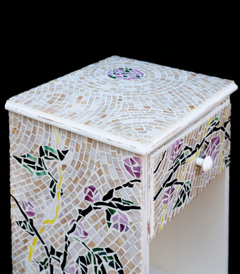 Come discover my passion for creating unique mosaic art by repurposing found objects, glass and tile, mirror, old jewelry, and vintage dishes. This process of ‘creative recycling’ makes for great adventure, loads of fun and very dramatic results!